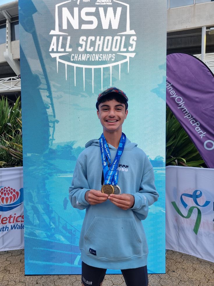 Other gold medal winners included Alex Coombes from St Luke's Catholic College Marsden Park (17-19 years Para RR - T72 100m), Xavier Hennessey from Gilroy Catholic College Castle Hill (Boys 17 Years Pole Vault) and Christopher Nilon from St Patrick's Marist College Dundas (Boys 15 Years 3000m Race Walk).
